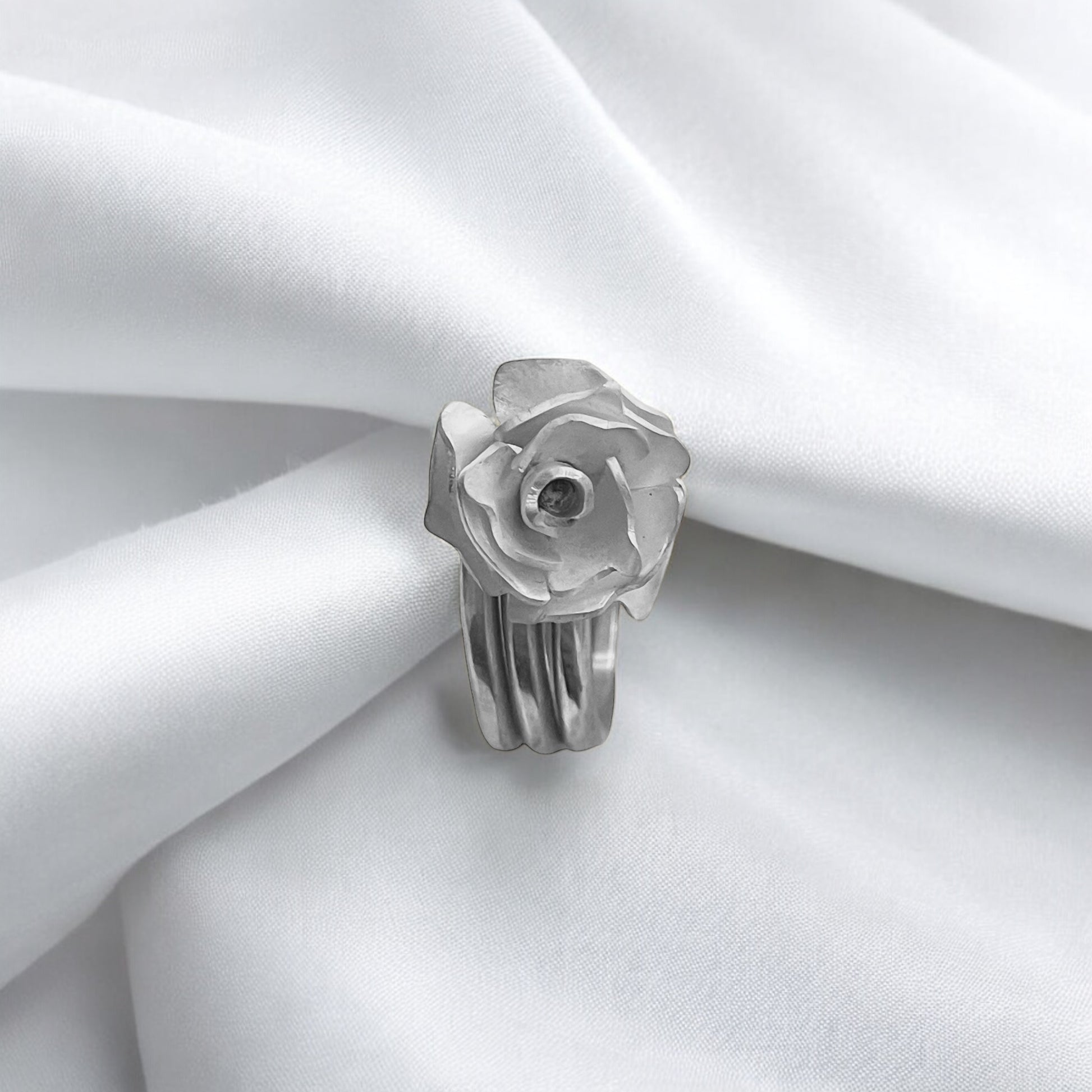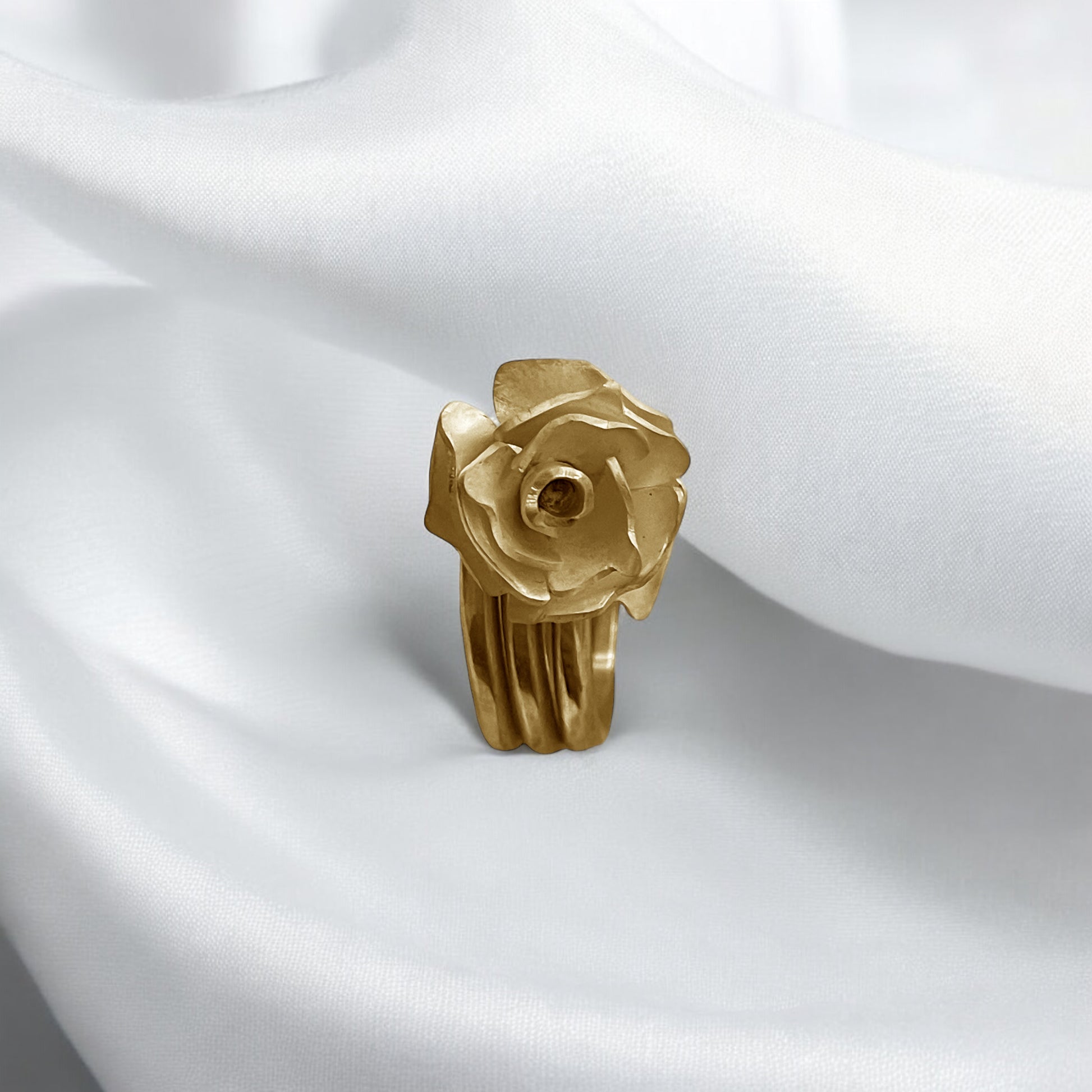 O Anel Flor traduz a delicadeza da natureza em metal sólido. Suas pétalas esculpidas parecem capturar o instante em que uma flor desabrocha, eternizando o frescor da primavera. É uma peça que fala de renovação, beleza efêmera e da força escondida nas coisas sutis.