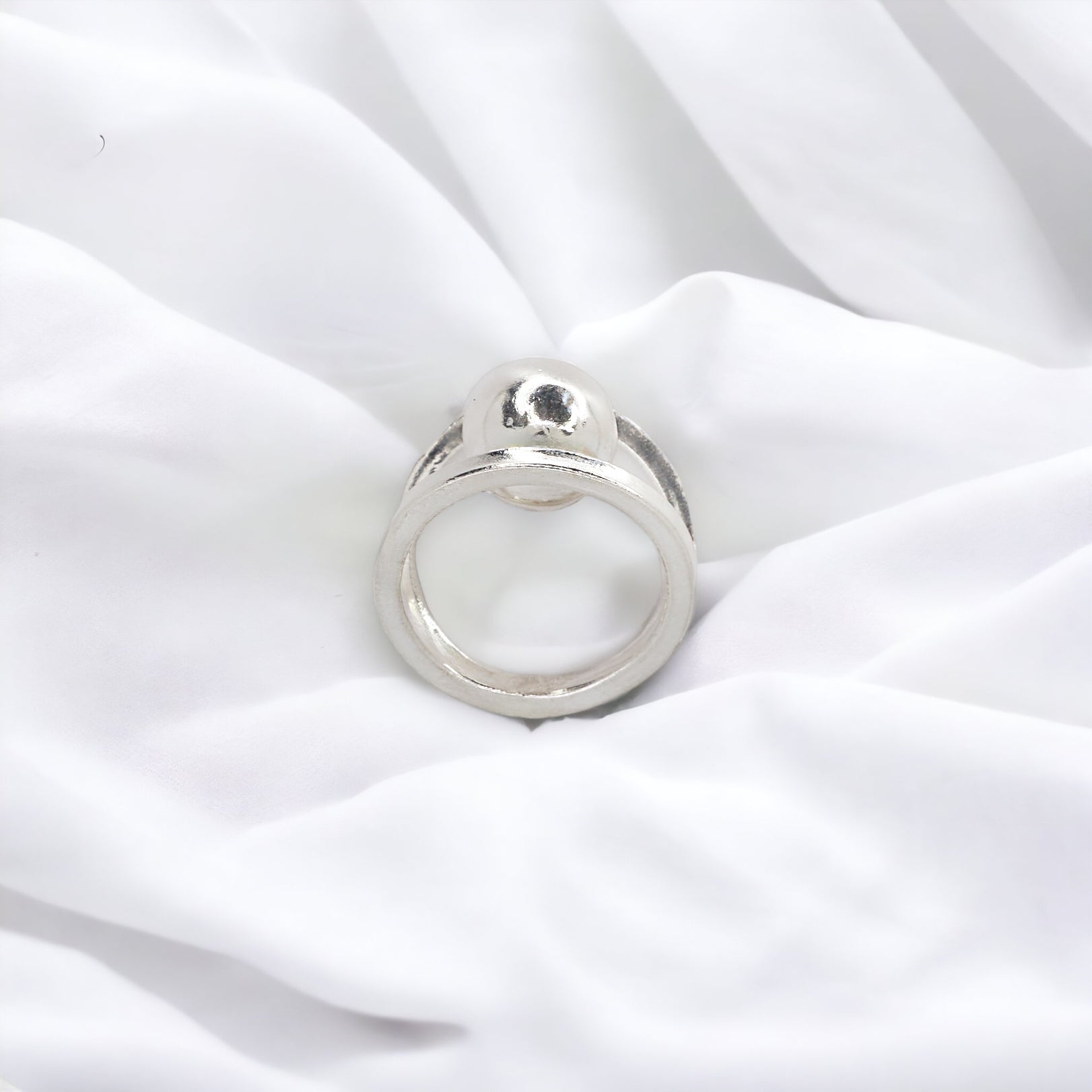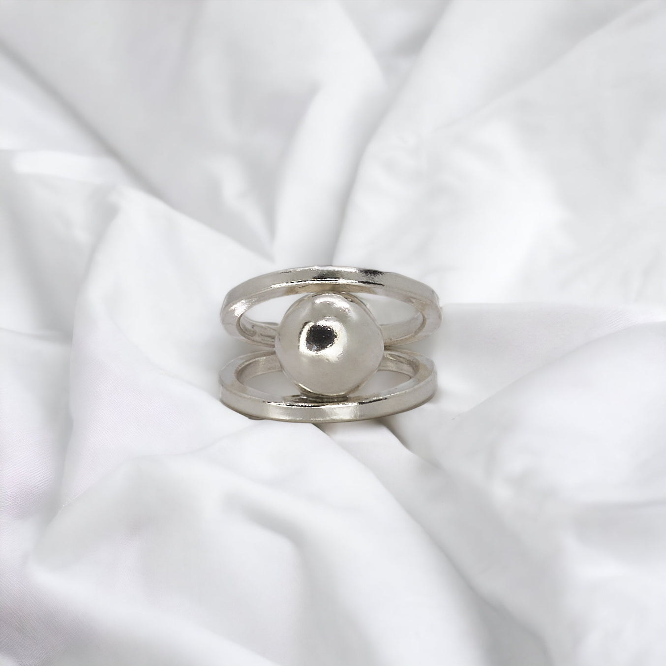 O anel Órbita traz a geometria do cosmos em forma de joia. Uma esfera em eterno movimento, rodeada por seu próprio universo. Minimalista e atemporal, é um lembrete de que cada um de nós carrega mundos dentro de si. Pequenas variações de cor e forma são naturais, devido a produção artesanal.