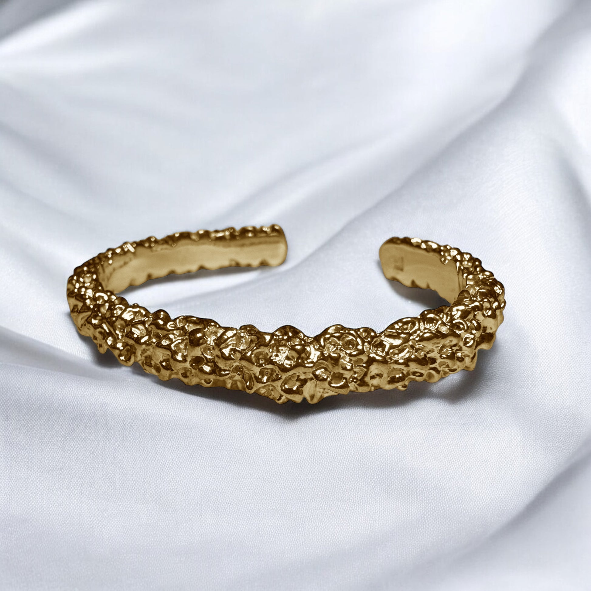 O bracelete Lava é pura energia solidificada. Suas formas remetem ao fogo e à transformação, como se a joia fosse moldada pelo próprio magma. Uma peça intensa, para quem gosta de carregar impacto no pulso.