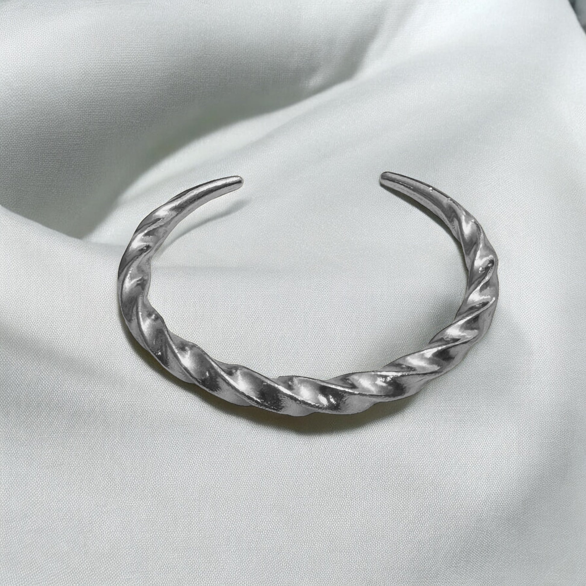O bracelete Twist nasce da tensão entre força e fluidez. Uma linha contínua, torcida em movimento, que simboliza equilíbrio em meio ao caos. Uma joia que veste o corpo como escultura.